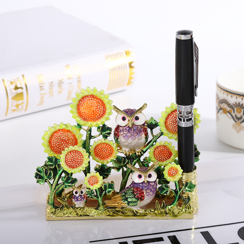 인기있는 고급 레트로 DIY 명함 홀더 아연 합금 크리에이티브 올빼미 만화 단층 명함 홀더 명함 홀더