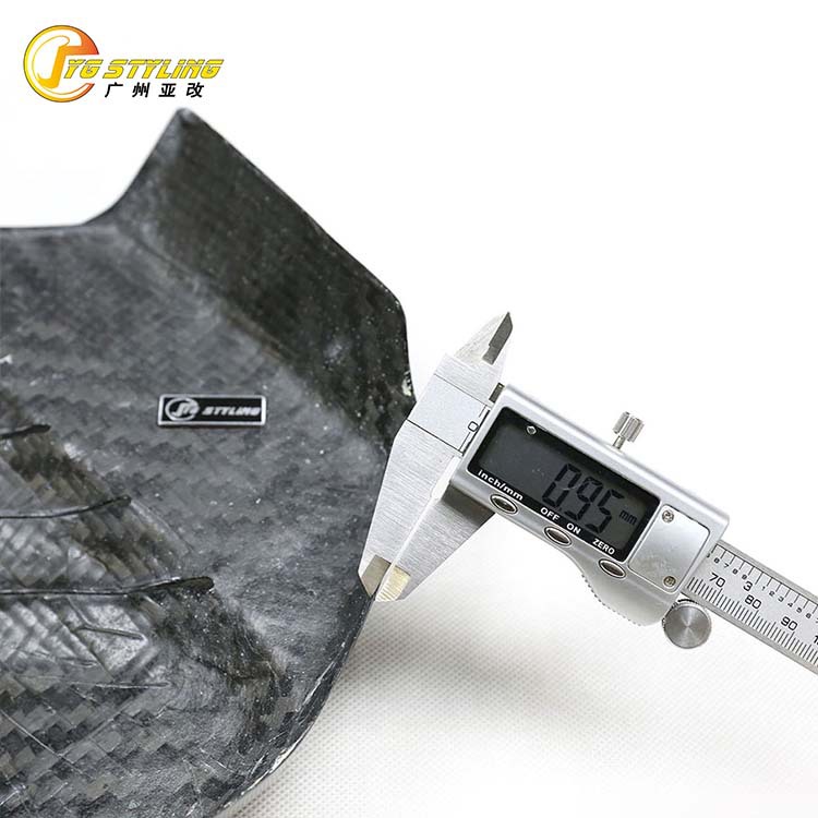 产品特性:罐抽工艺,采用3D红外线扫描技术,铝制模具,真空罐抽成型,CNC雕刻,后粘卡扣方式生产,重量轻、薄、耐用性,强度高,可定制3K斜纹、3K平纹、锻纹等