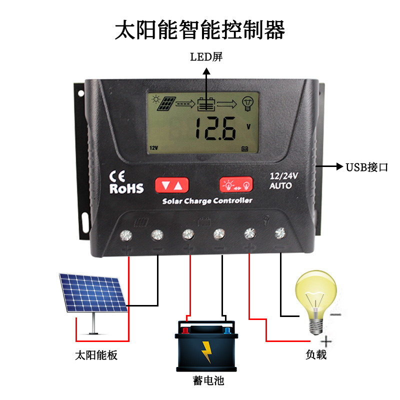 공장 뜨거운 판매 지능형 태양 컨트롤러 광전지 배터리 컨트롤러 LED 디스플레이 제어