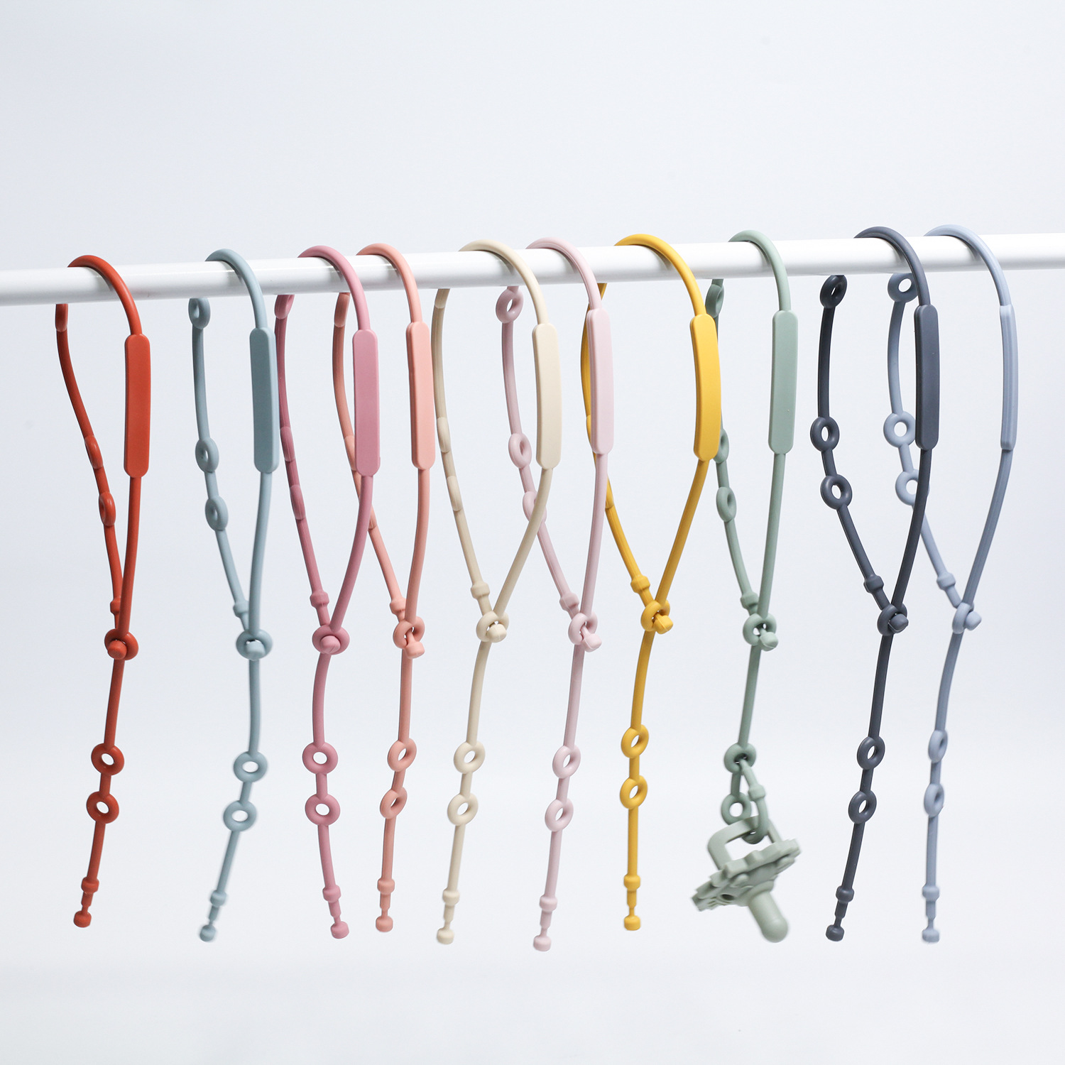 【品 名】:亚马逊热卖食品级硅胶婴儿奶嘴绑带儿童小玩具婴儿车绑带牙胶挂绳