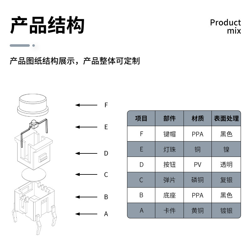 Kanghong 뜨거운 판매 8*8*15 빛 키 캡 직경 11.8 에메랄드 녹색 빛 흰색 빛 4 핀 플러그인 택트 스위치