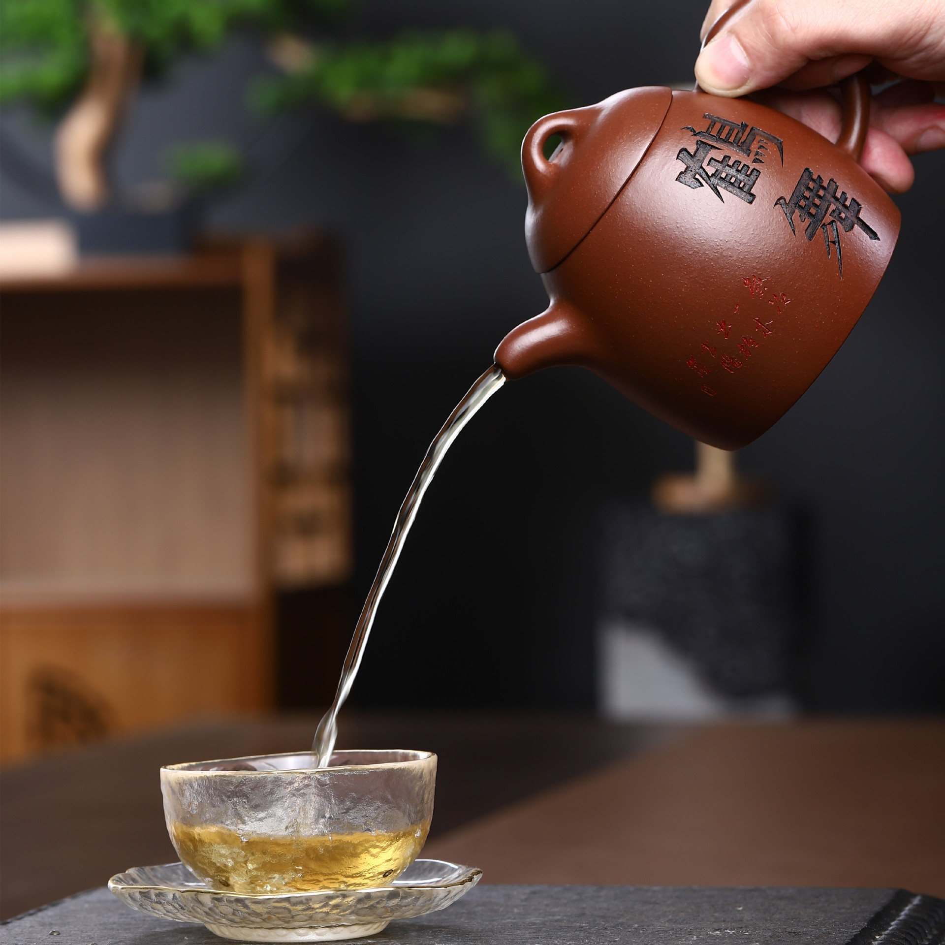 秦权,有王者风范,不怒自威,犹如六合在握,稳守金汤,实乃壶之王者。秦权,俗称“秤砣”,既实实在在,又有分量,承担着检测分量轻重的标准权。秦权,更比古往今来所有的权更有衡器之外的历史、文化内涵!全手工刻绘,锦上添花,更突显了此壶的摹古气息!