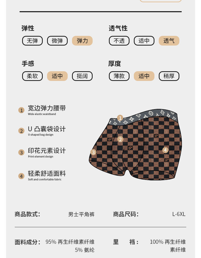 기능 빠른 건조 직물 이름 폴리에스테르 원사 카운트 D 61-70d 직조 평범한 직조 포장 형태 간단한 주요 직물 구성 폴리에스테르 섬유 (폴리에스테르) 크로 치 라이닝 재료 폴리에스테르 섬유 (폴리에스테르) 원산지 중산 허리 중간 허리 패턴 기하학적 패턴 적용 군중 카테고리 성인 색상 격자 별 [편지] 크기 6XL 코드 [권장 100.00 kg-110.00 kg]] 시장에 시간 2023 년 봄 주요 직물 구성 내용 70% (포함)-80% (독점) 계절에 적합 사계절 장군 크로 치 라이닝 성분 내용 80% (포함)-90% (독점) 적용 가능한 성별 남성 -