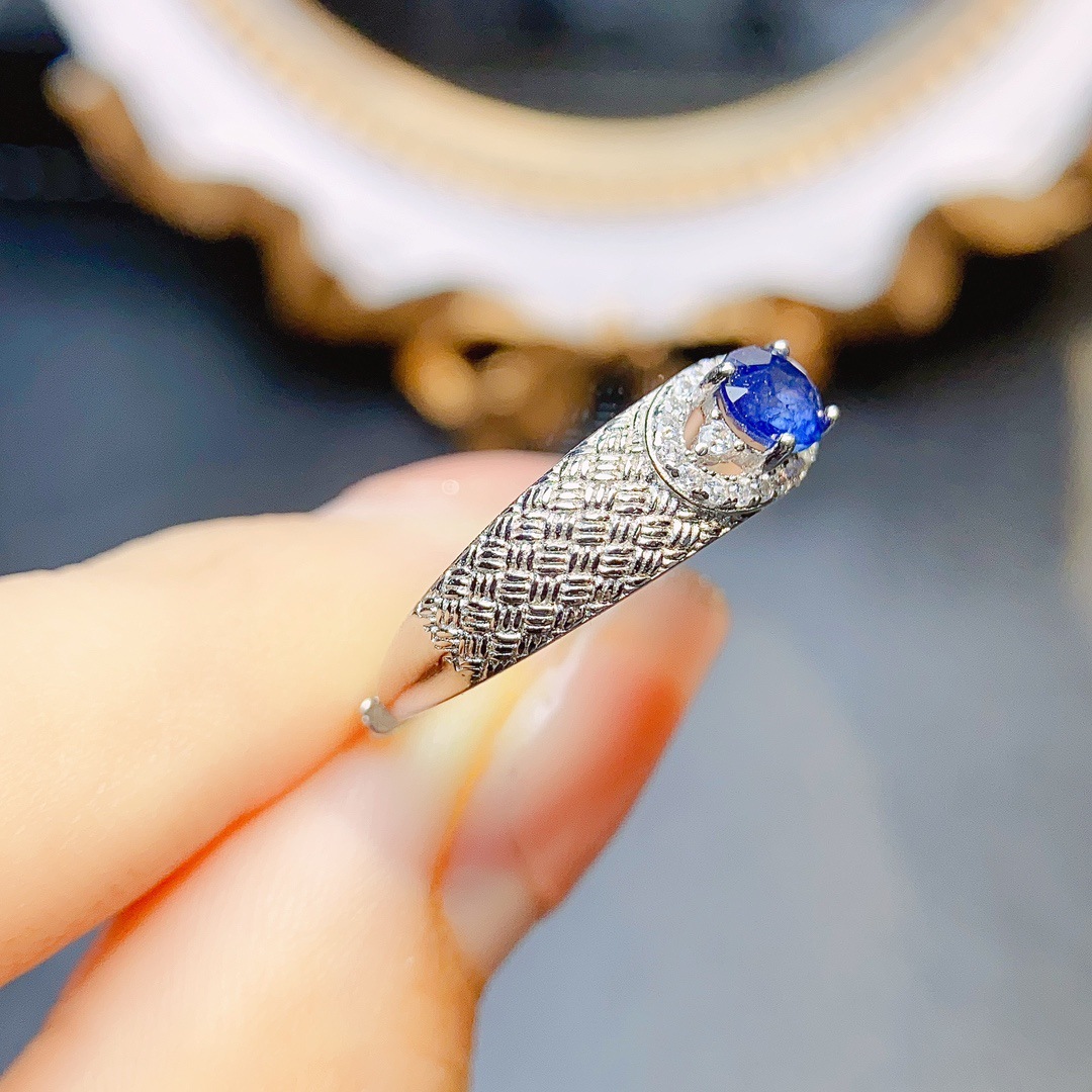 공장 도매 폭발 천연 사파이어 반지 S925 실버 주요 돌 상감 4*5 유럽과 미국 판매 머리카락의 세대