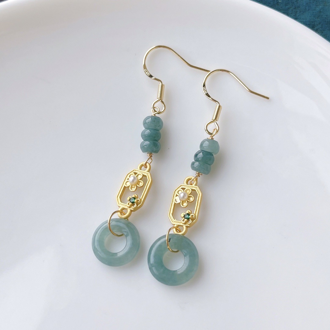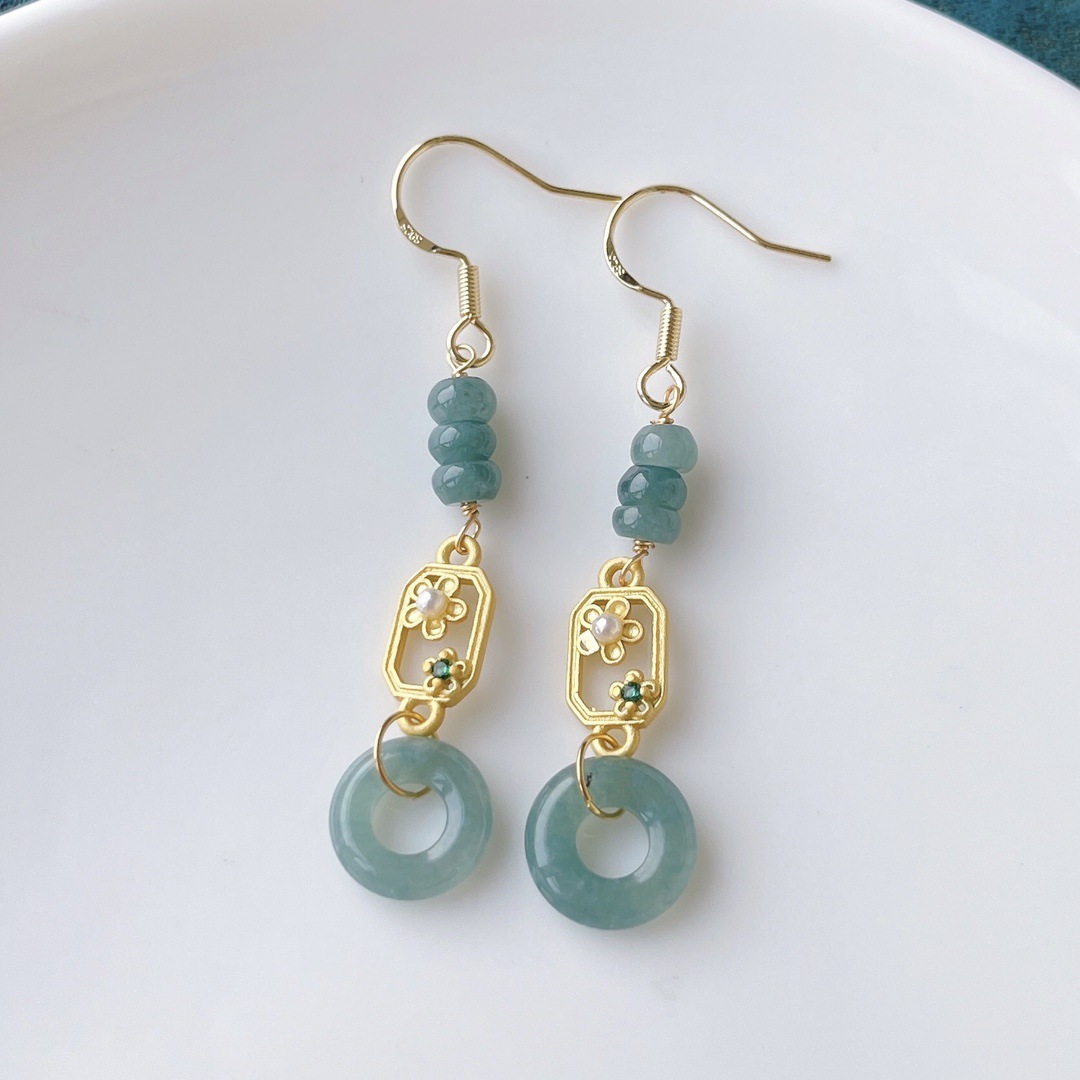 天然A货蓝水料甜甜圈翡翠耳坠~14k注金配件,直播引流新款