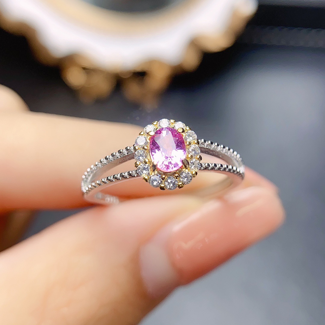 공장 도매 폭발 천연 분말 블루 보물 반지 S925 실버 주요 돌 상감 4*5 판매 유럽과 미국 머리카락의 세대