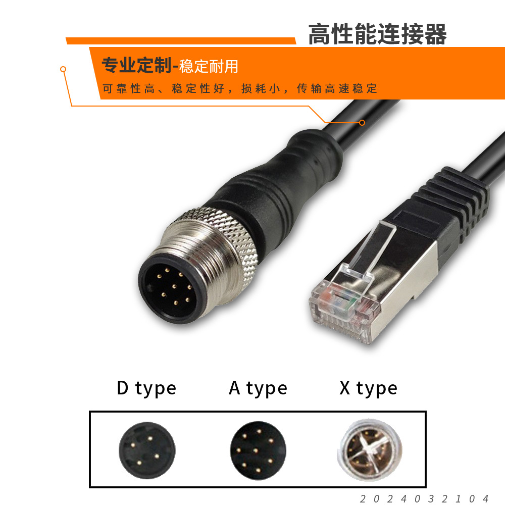 산업용 비전 카메라 트리거 케이블 RJ45 5급 방수 네트워크 케이블 M12 이더넷 D형 커넥터 마오지아 인기 제품