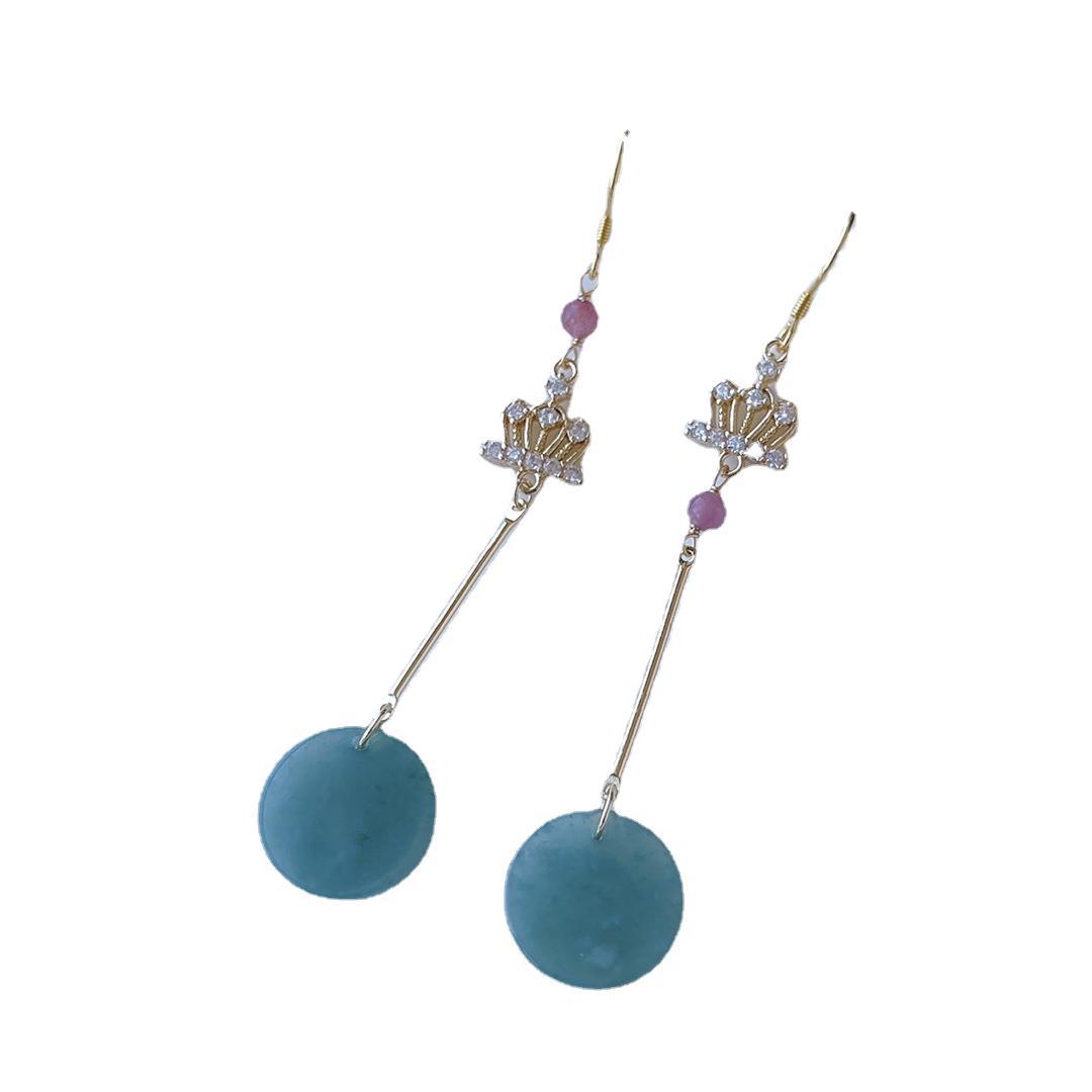 天然翡翠A货蓝水料圆牌耳坠~