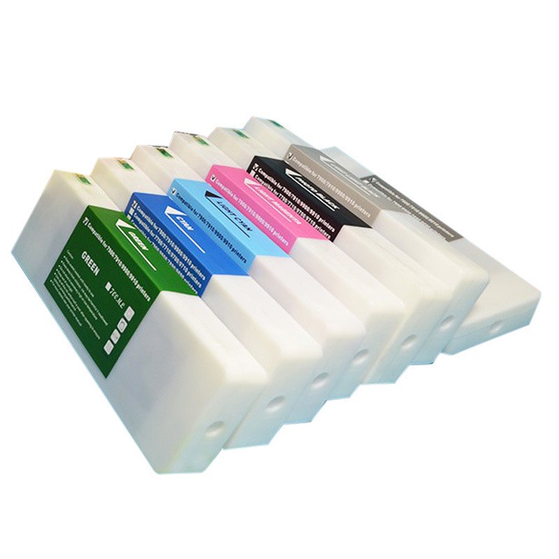 1.全新无海绵循环免抽真空填充墨盒,使用全透明PP材质一次注塑成型;内部采用恒压设计,不漏墨、不滴墨;可适用任何类型的墨水填充,如热转印、染料、颜料、弱溶剂、可食用、荧光等墨水;采用一次性芯片配合芯片解码器,确保墨盒能够多次循环重复使用。