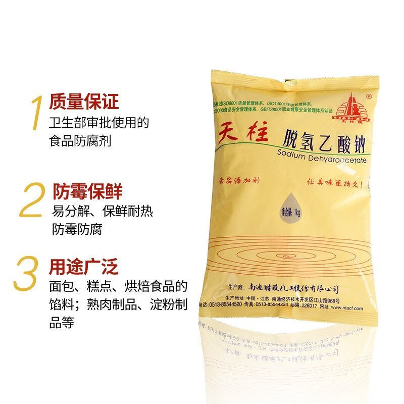 원산지 장쑤성 수입할지 말지 아니요 모델 식품 등급 품목 번호 01 카테고리 방부제 상표 천주 유효물질 함량 99.9 구현 표준 GB 25547-2010 CAS 4418-26-2 식품첨가물 생산허가번호 SC20132067100141 제품 이름 데히드로아세트산나트륨 사양 및 모델 20 kg/상자; 나트륨 데 하이드로 아세테이트 -