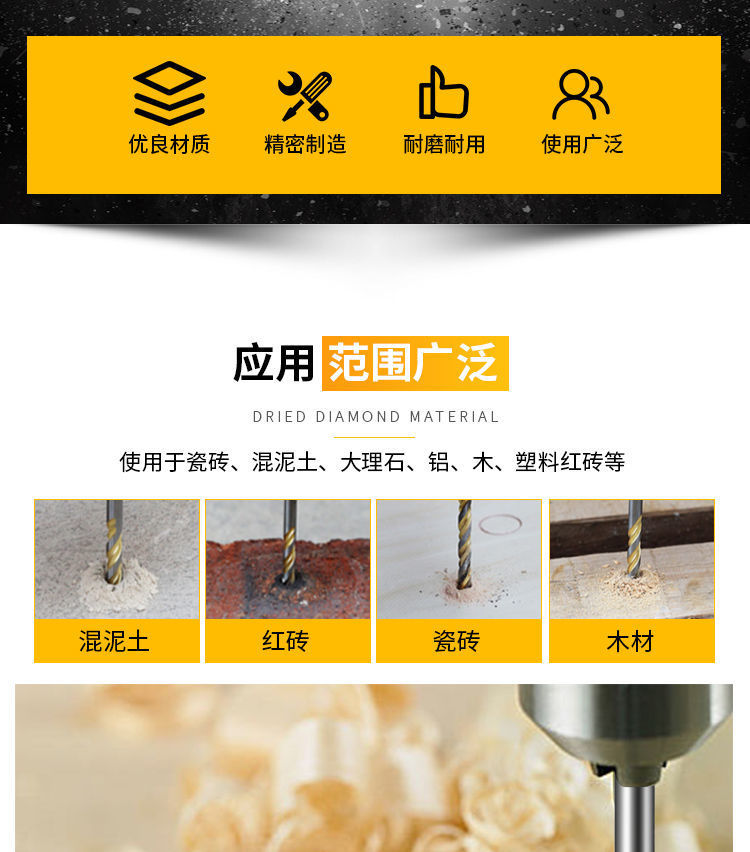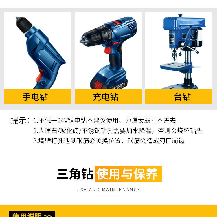 국경을 넘는 인기 상품 다기능 삼각 드릴 비트 타일 유리 콘크리트 핸드 드릴 합금 도매 공구 가정용