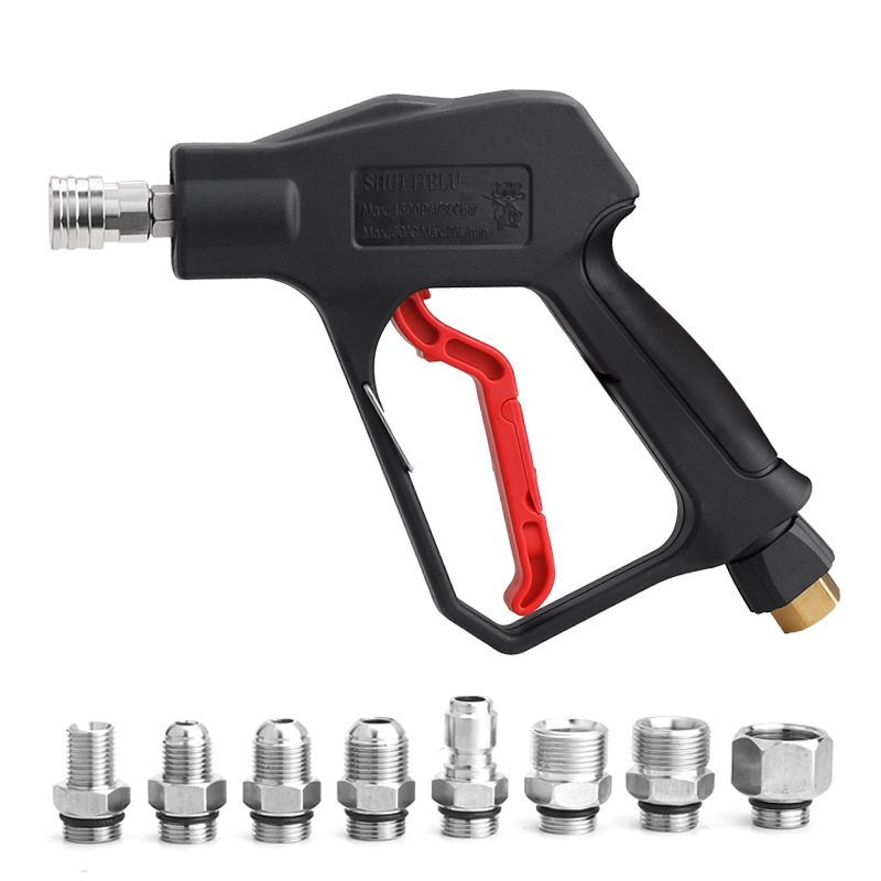 브랜드 루이 란 총 헤드 재료 304 스테인레스 스틸 여성 조인트 손잡이 재료 나일론 플라스틱 스프레이 거리 5-12 적용 범위 고압 청소 기계/자동차 세탁기에 적합 수압 250kg 압력 단일 제품의 무게 570 사양 및 모델 내부 22 건 테일 + 5 색 노즐 -