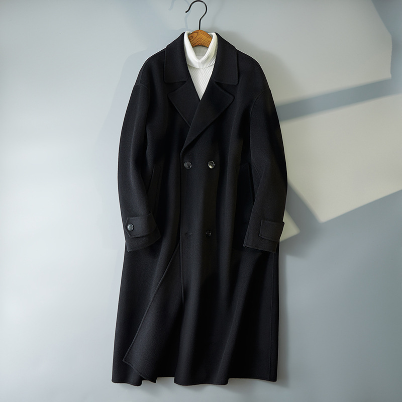유럽역 2025 겨울 신작 남성 인기 양면 모직 롱 한국식 심플하고 우아한 캐주얼 모직 코트