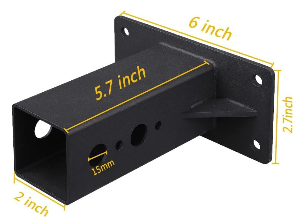 3.【尺寸及承重】本产品直径为2英寸拖车挂件接收器。配有两个5/8”直径拖车挂机插销孔,可容纳180磅。