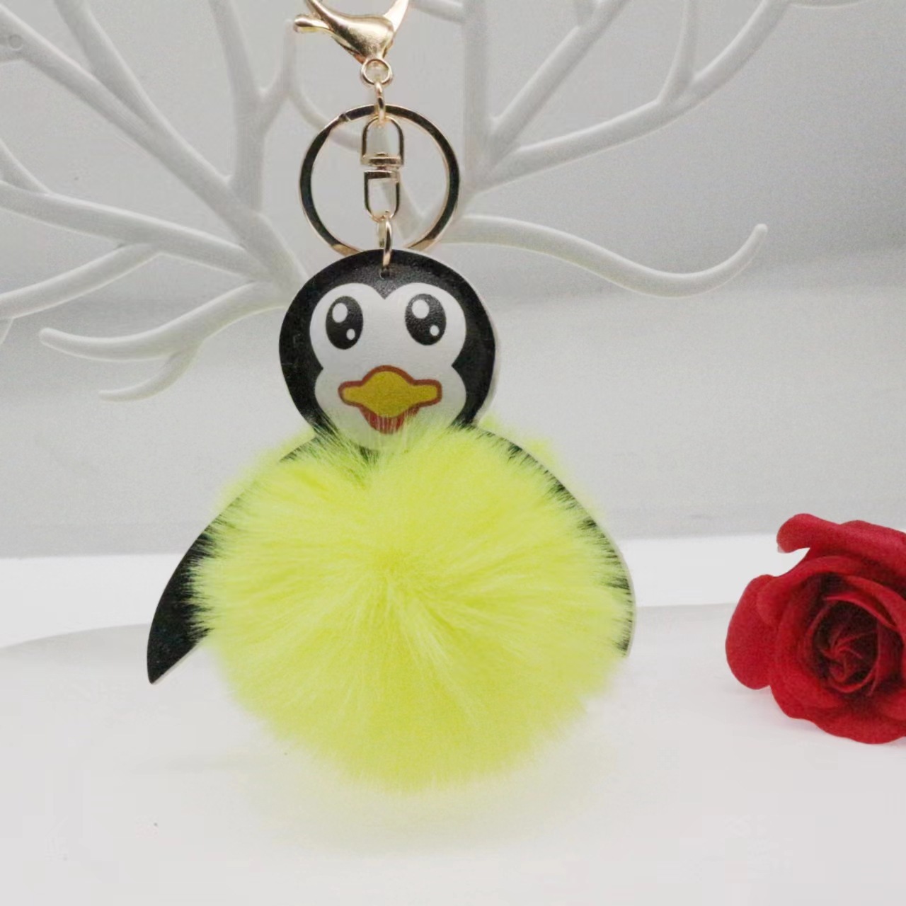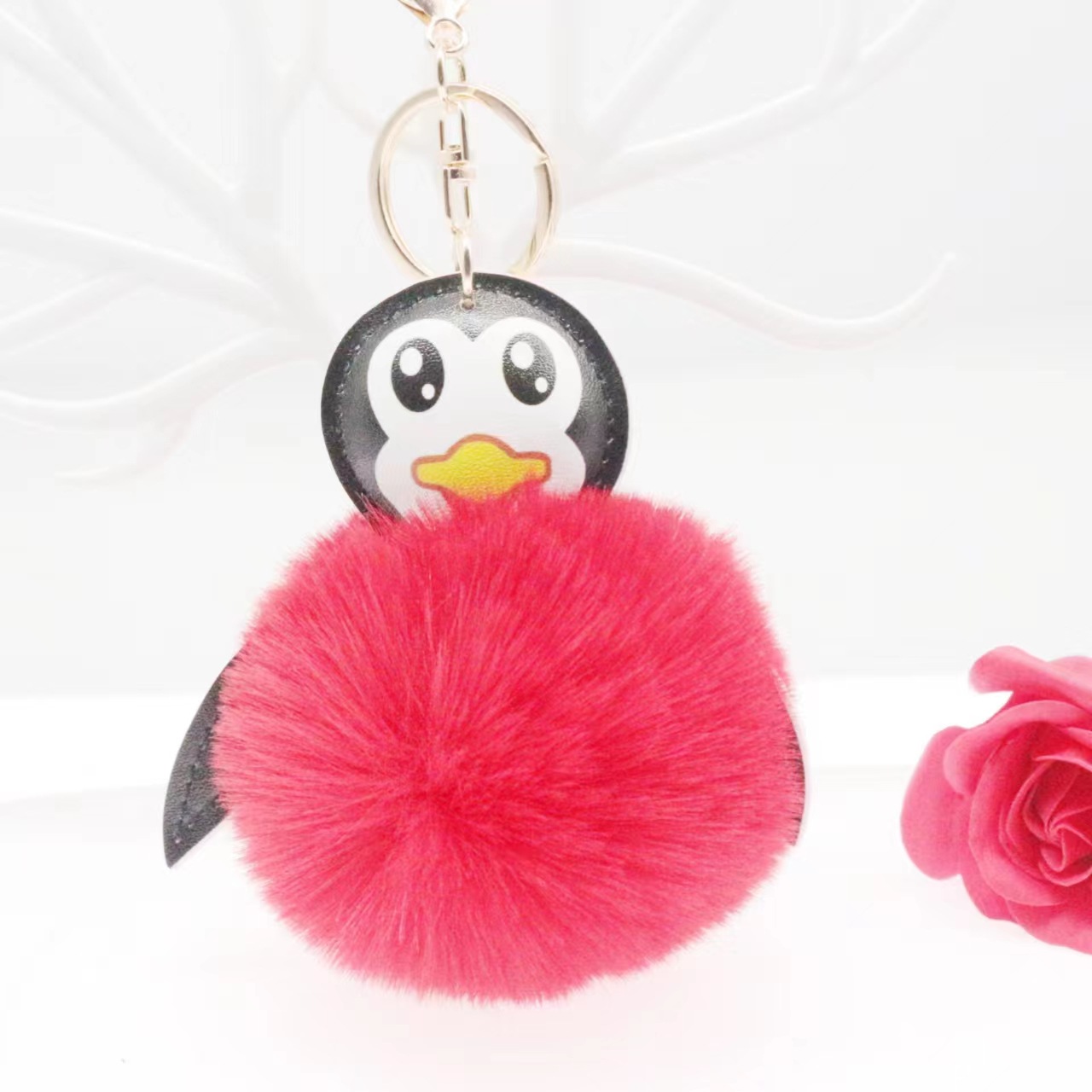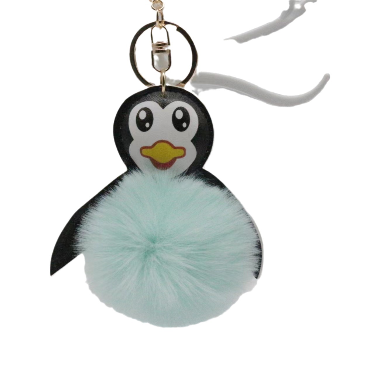 뜨거운 판매 만화 PU 가죽 펭귄 모피 공 열쇠 고리 귀여운 펭귄 자동차 가방 봉제 펜던트 도매