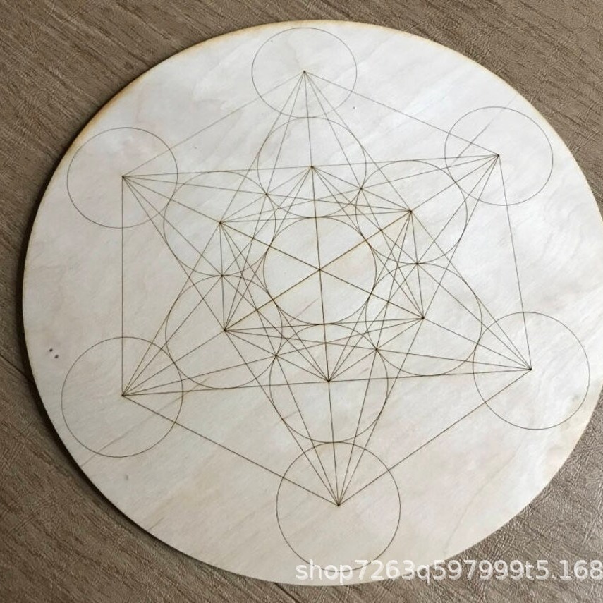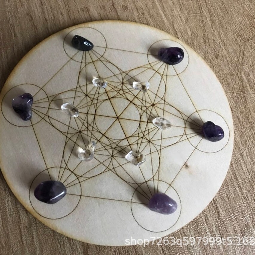 木质水晶能量板跨境批发热卖摆盘摆件几何图案激光雕刻装饰圆盘木质工艺品