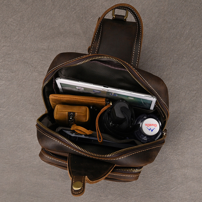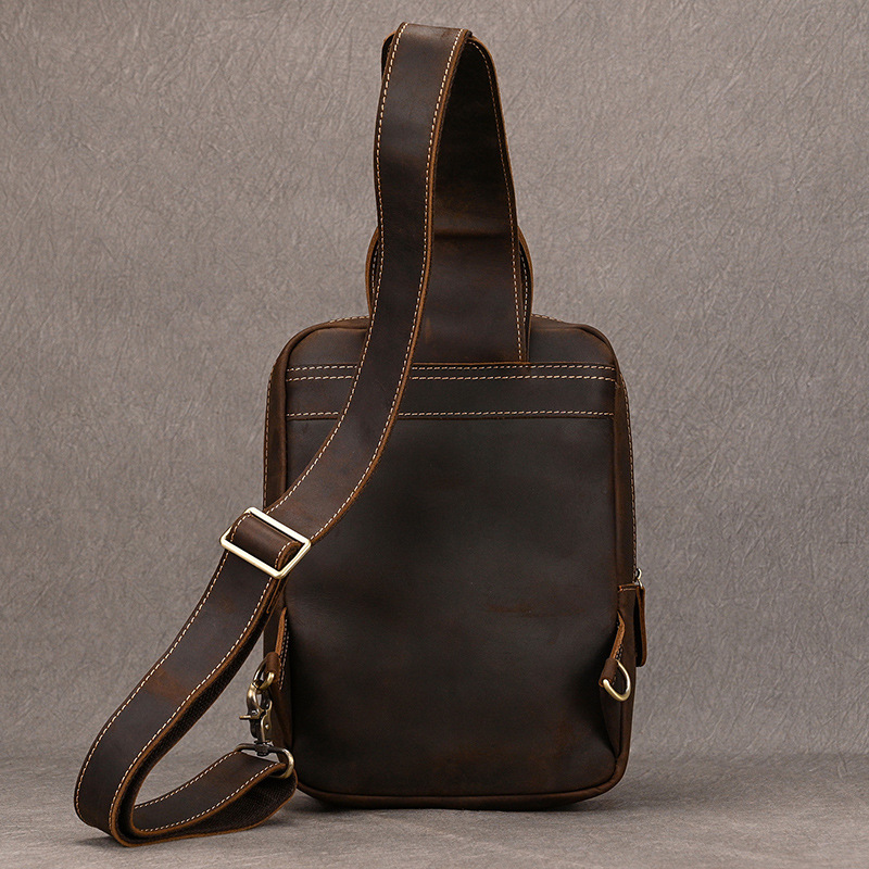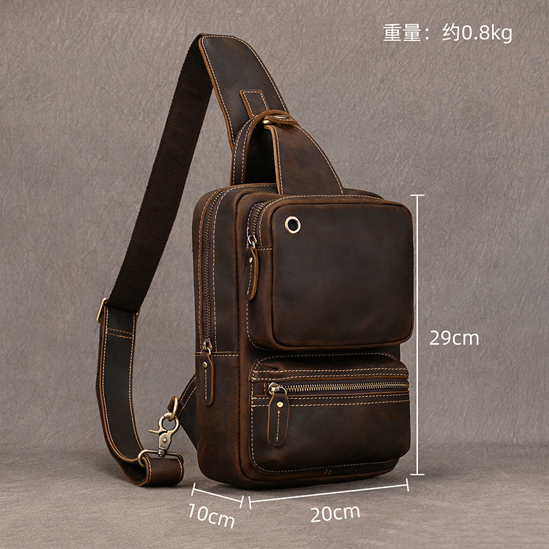 스타일 유럽과 미국의 복고풍 항목 번호. 9456 소재 정품 가죽 피질 특성 상단 레이어 소가죽 기능 착용 저항 패턴 단색 라이닝 텍스처 폴리 에스테르 코튼 색상 9456-어두운 다크 브라운 라이센스 개인 상표 예 시즌 2023 년 봄 적용 가능한 시나리오 레저 여행 컴퓨터 크기 수용 11 인치 최신 배달 시간 1 적용 가능한 성별 남성 제품 카테고리 남자 가슴 가방 -