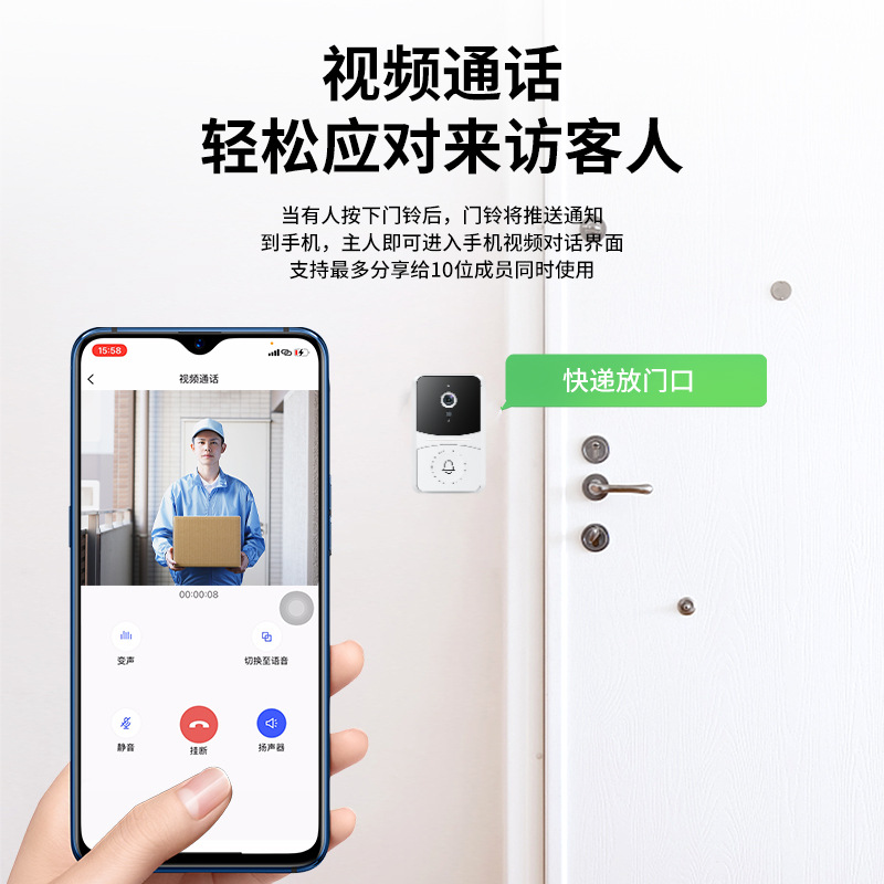 4:变声对讲;按下门铃推送信息,实时查看视频对讲。