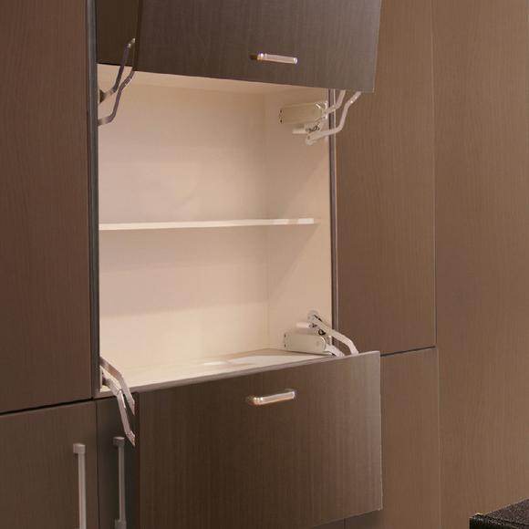 ● 由于安装在橱柜顶板下部,与传统支撑相比,高度方向的占用空间少,支撑不会妨碍搁板安装。