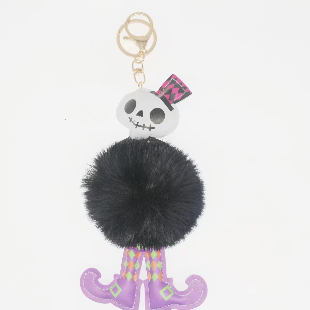 뜨거운 새로운 할로윈 해골 모피 공 열쇠 고리 PU 가죽 봉제 자동차 가방 매달려 장식품 도매