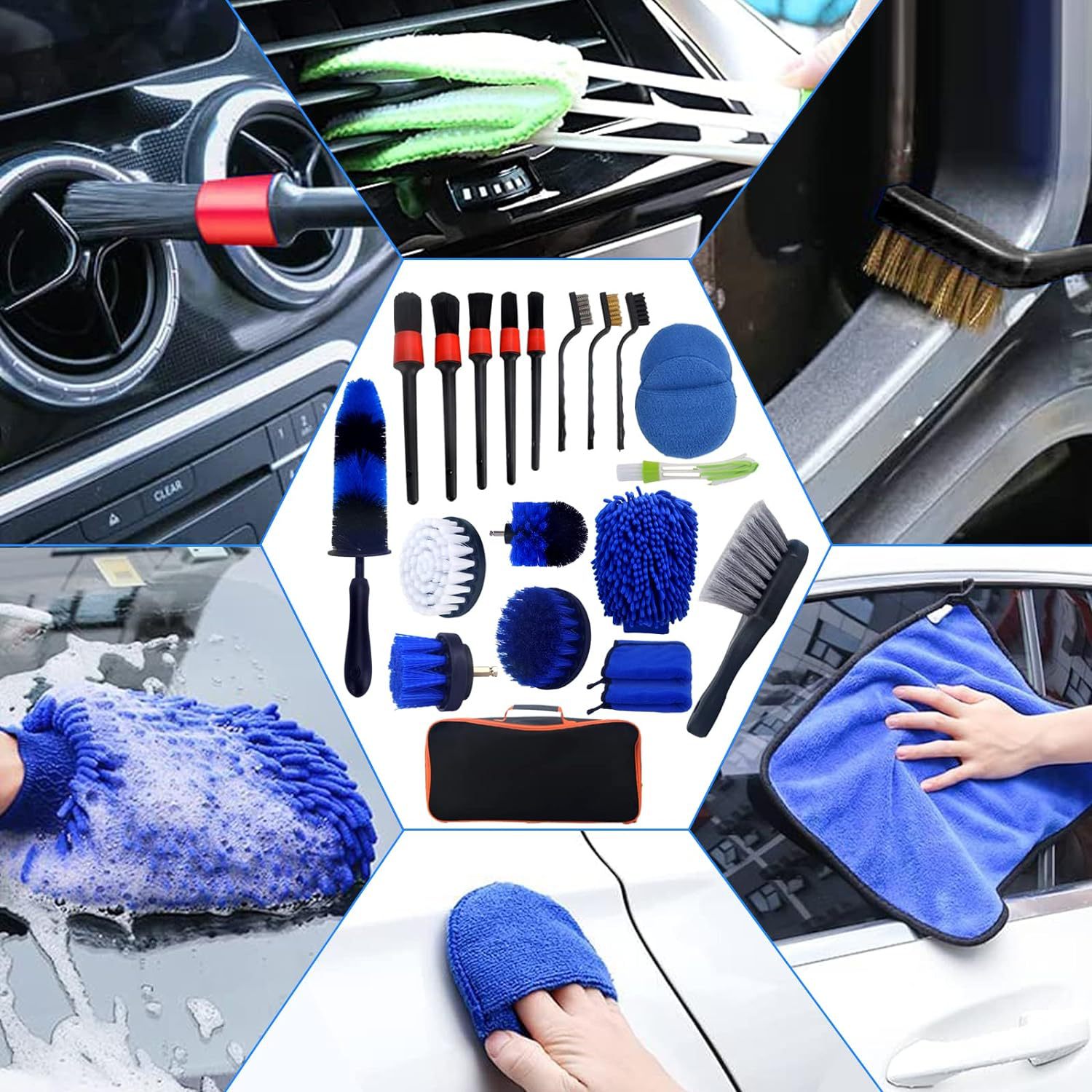 크로스 보더 핫 세일 21 피스 휠 타이어 브러시 키트 자동차 상세 드릴링 브러시 키트 세차 청소 브러시 키트