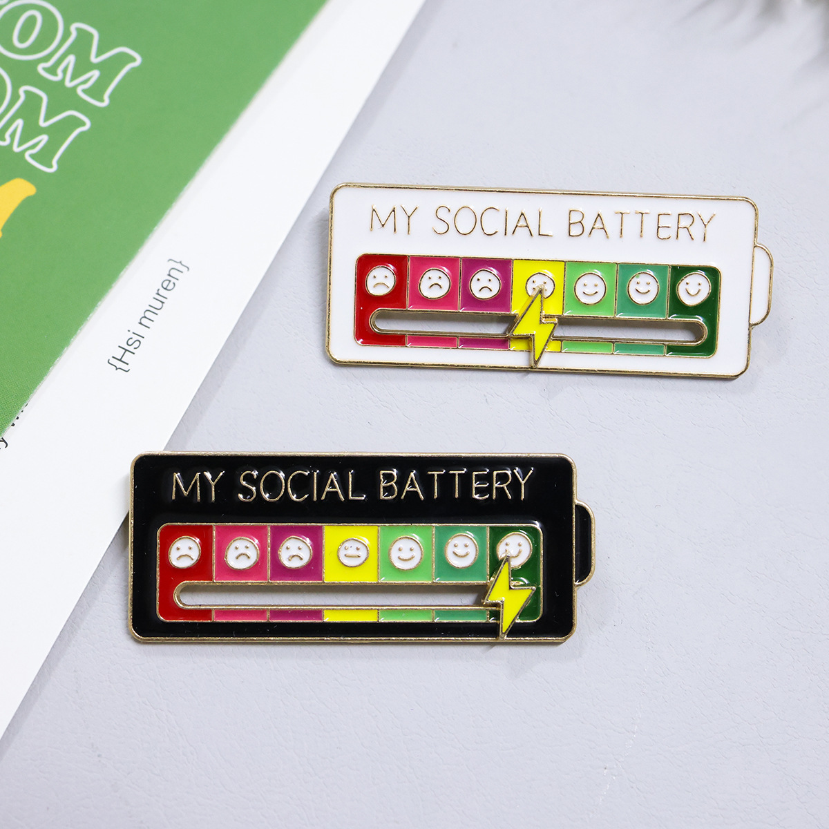 佩戴技巧:轻微用力(切勿太用力)捏着金属扣两边的弹簧片,往外拉,即可摘取,佩戴时对准针可直接按上(不用捏弹簧片亦可)。