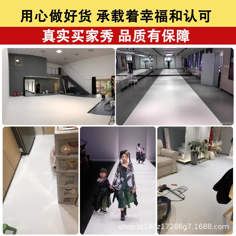 순수한 흰색 PVC 플라스틱 바닥 가죽 두꺼운 바닥 스티커 내마모성 시멘트 바닥 직접 확산 무대 사진 T 바닥 매트