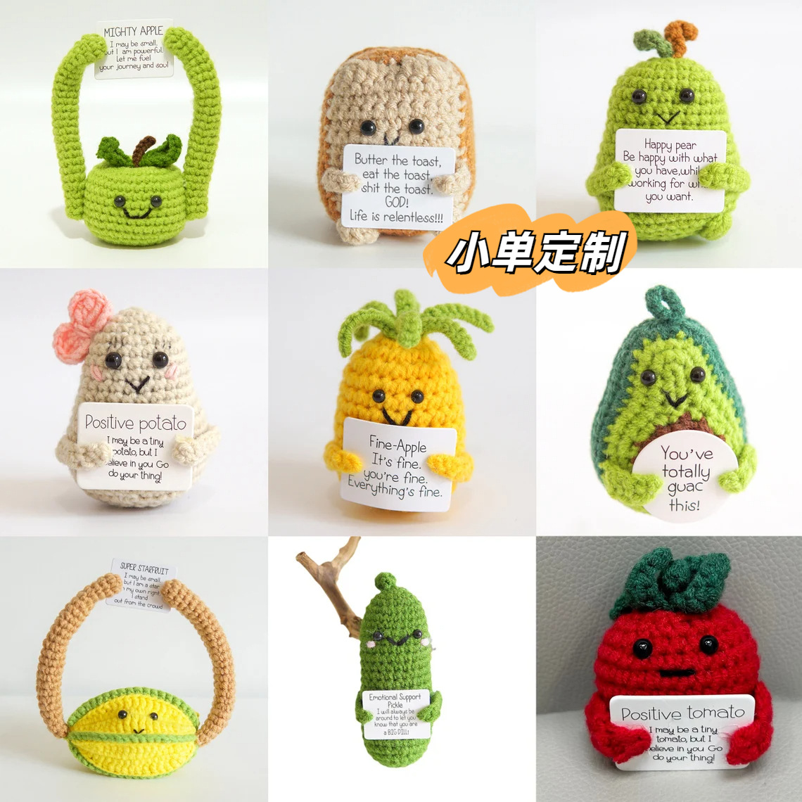 亚马逊热销正能量土豆、胡萝卜、黄瓜、菠萝、梨子、牛油果等系列毛线钩织工艺品