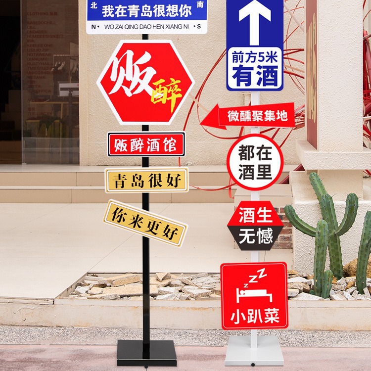 당신은 당신의 바람이 여전히 그물 빨간 도로 표지판에 불고 있다고 생각합니까? 사진을 찍고 상점 문에있는 광고판을 펀치하여 도로 표지판을 표시합니다.