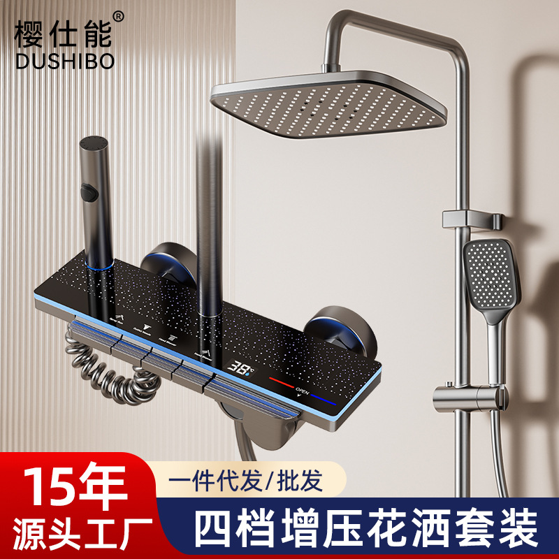 花洒套装花洒全套淋浴增压全铜花洒全套厂家智能恒温花洒喷头枪灰花洒淋浴花洒套装金色暗装花洒淋浴花洒 枪灰花洒亚马逊爆款花洒套装五金挂件生产厂家