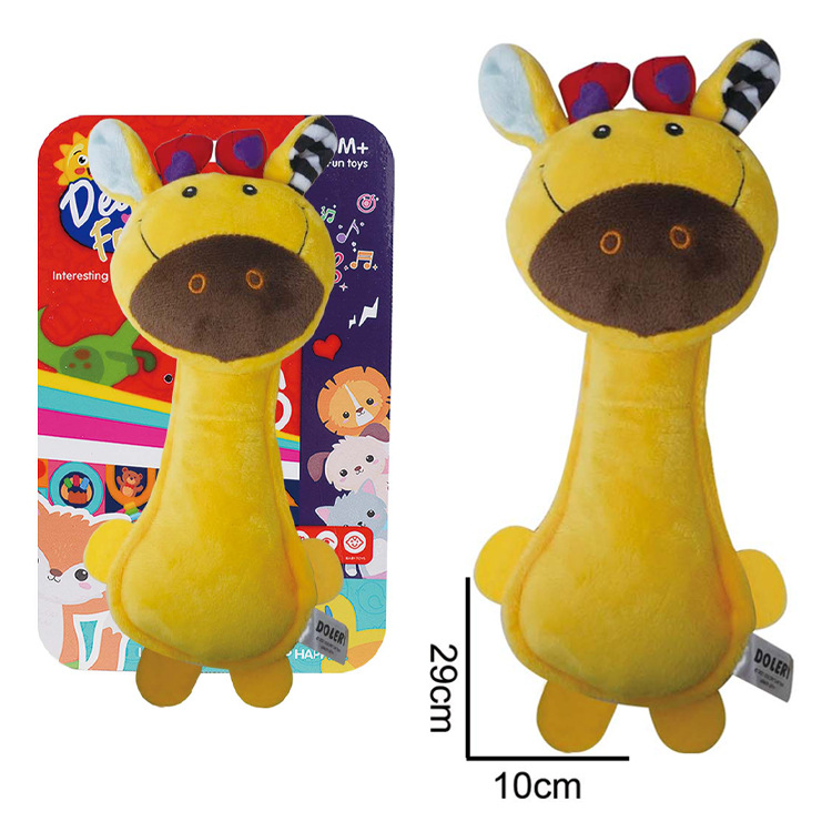 亚马逊热卖婴幼儿益智毛绒安抚套装卡通小鹿狐狸白熊手抓BB棒玩具
