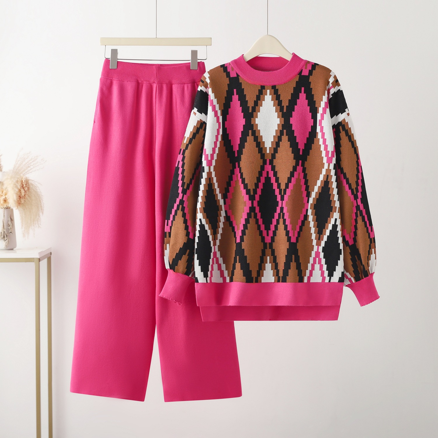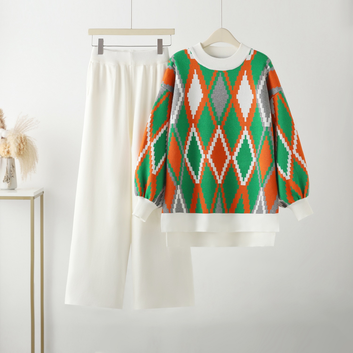 패턴 기하학적 패턴 바지 길이 바지 인기있는 요소 마카롱 컬러 공예 자카드 목록의 연도/시즌 봄 2024 직물 이름 비스코스 섬유 주요 직물 구성 비스코스 섬유 색상 카키 크기 프리 사이즈 스타일 유형 일본과 한국의 레저 주요 직물 구성 요소 내용 30% 미만 스타일 심플한 스타일 세트 스타일 바지 세트 적용 가능한 성별 여성 슬리브 타입 정사이즈 소매 소매 길이 긴 소매 국경 간 공급 여부 아니 제품 카테고리 레저 세트 -