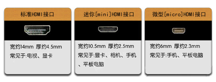 由于HDMI有三种不同类型的接口,请您认真核对自己设备的HDMI接口再购买!