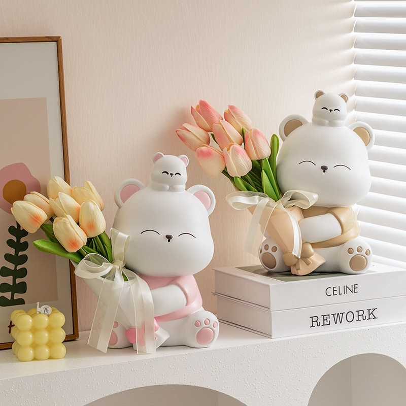 轻奢风装饰摆件爆款捧花熊插花摆件客厅电视柜装饰品家居摆件礼品