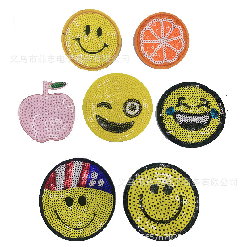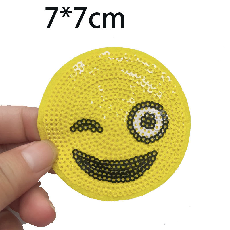 뜨거운 조각 스마일리 자수 천 스티커 옷 깨진 구멍 패치 가방 장식 스티커는 바느질하고 뜨거운 셀프 페이스트 할 수 있습니다