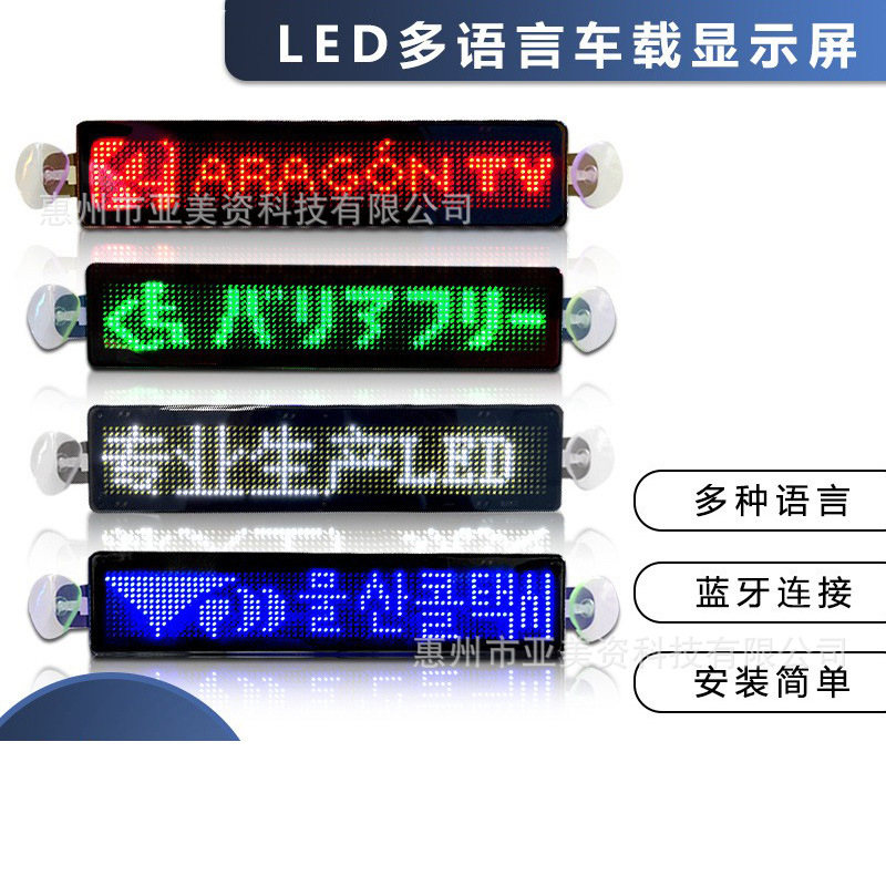 跨境热销 LED车载屏手机蓝牙车载LED显示屏滚动汽车后窗 多种语音