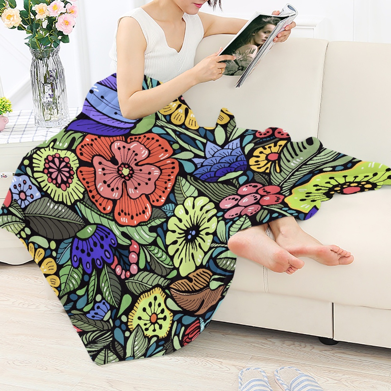 Ins 대외 무역 폭발 지저분한 야생 꽃 HD 디지털 인쇄 플란넬 담요 소스 공장 도매 세대