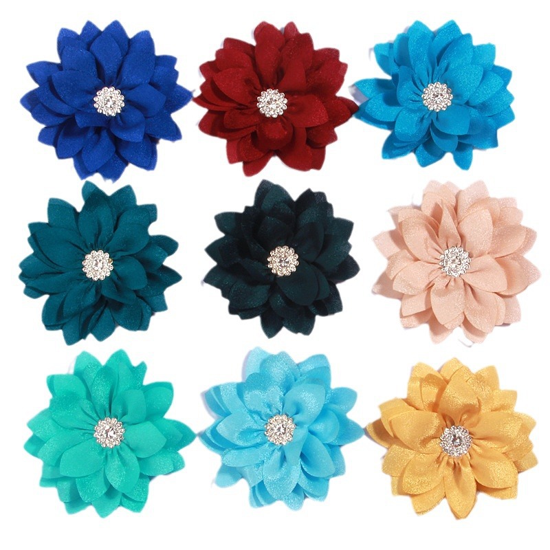 【名称】:缎面雪纺加水钻花朵,单价为单个花朵的价格,花朵背面是平的,无夹子及其他装饰品.可以进一步加工