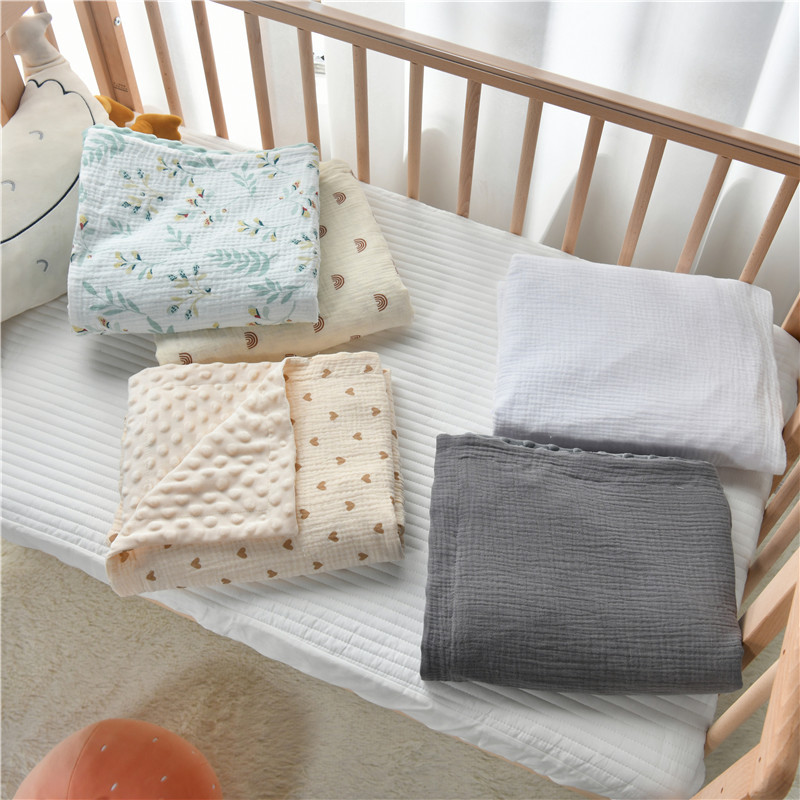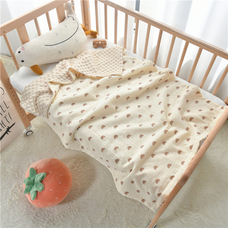 2层纯棉绉布加豆豆绒复合婴儿盖毯