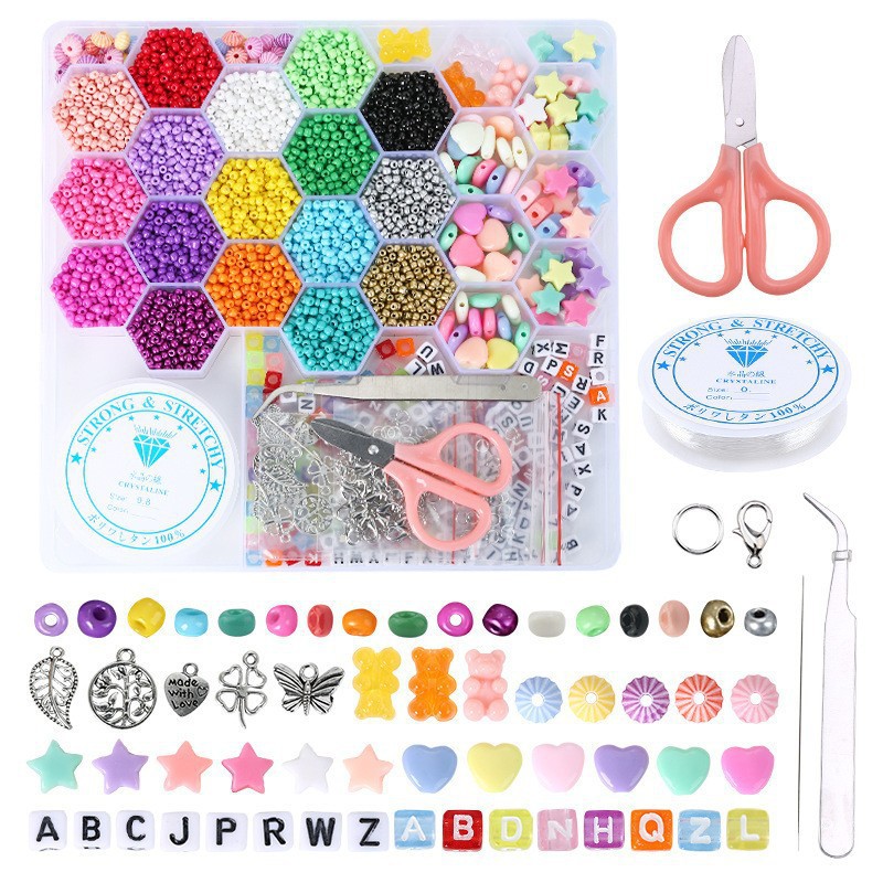 新款5(约430g) 24色米珠每格12g 爱心每格10颗 字母珠50颗 龙虾扣20颗 开口圈50颗 纱剪一个 弹力绳2个