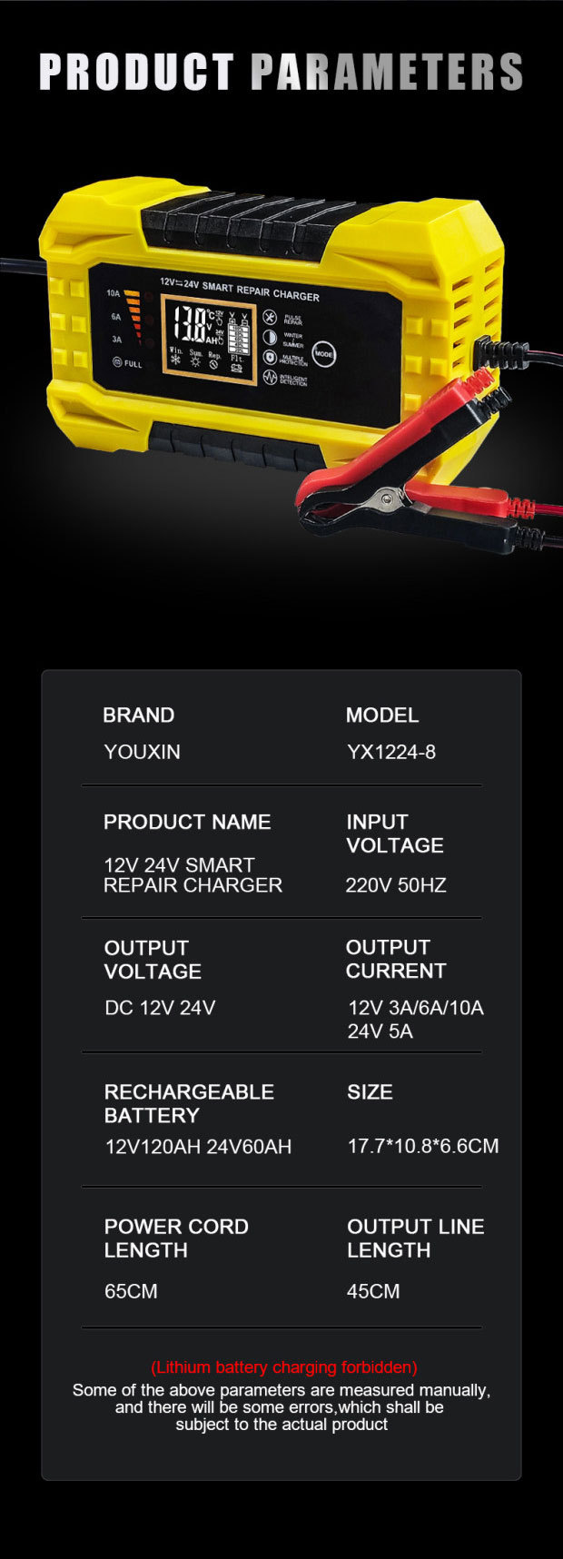 브랜드 Youxin 전기 기기 모델 12V3A/6A/10A-24V5A (호주 표준) 입력 매개 변수 AC90-240 출력 매개 변수 DC12V3A/6A/10A-24V5A 시리즈 12V-24V-8 적용 가능한 객체 배터리 -