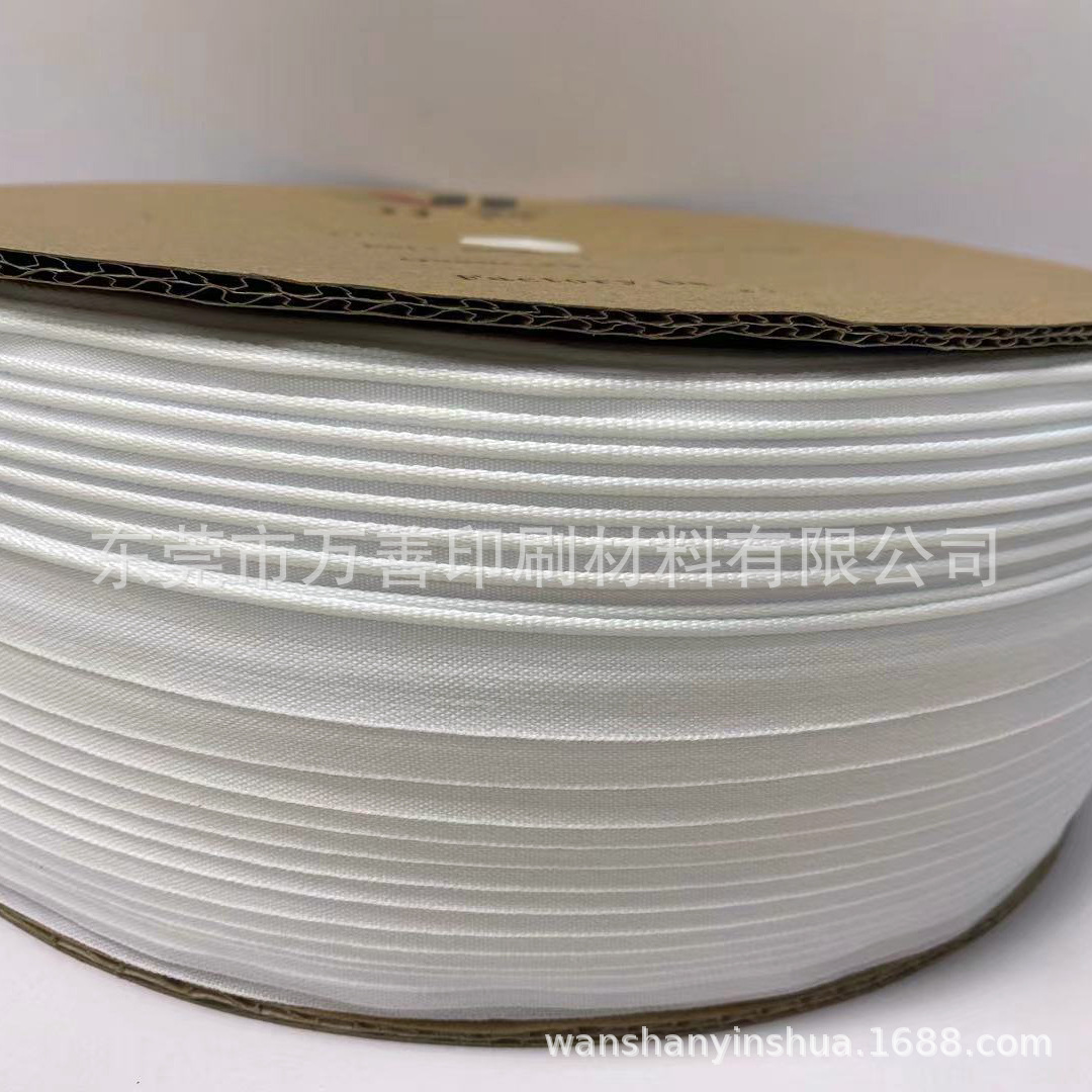 优点:原材料选用丝线质量优良,编织成品结实;且产品经过特制浆水浸制,切割时不掉落毛丝,切口干净美观,产品整体不易松散。且使用环保材料制作,符合国家环保标准。规格:长度500码/卷,宽度15MM误差+-1MM