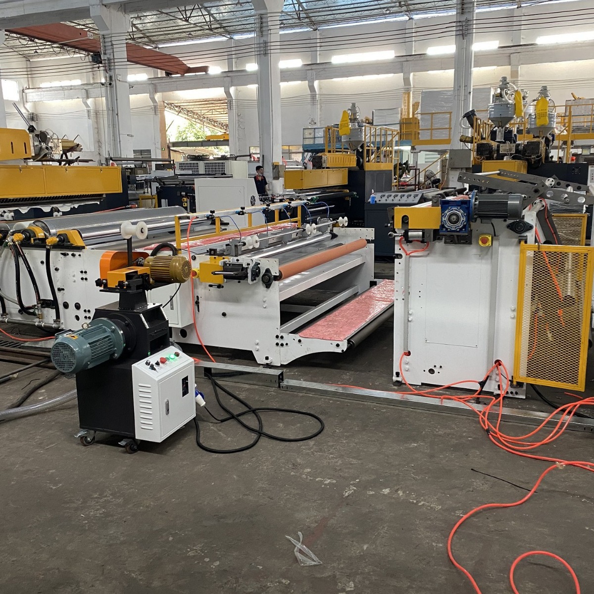 5.我们的产品配有严格的安全系统。紧急停止按钮可以停止整个机器,包括电路,挤出机和滚筒等。所有重要部件都配有保护屏障,每当打开保护屏障时,所有动作都会停止,以防止对工人造成伤害