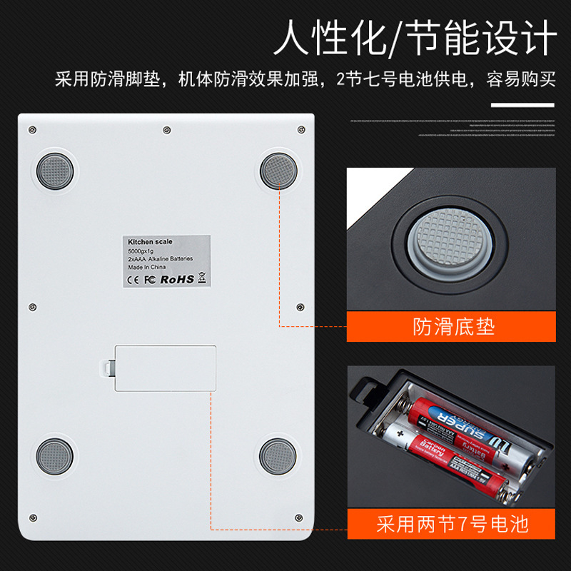 电池:2*AAA(两节七号电池)产品重量:477 g (彩盒+电子称+珍珠棉+珍珠棉压条+PE袋+说明书+2对AAA电池)
