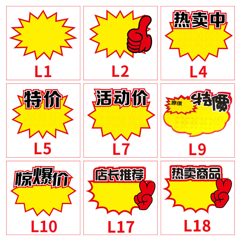 대형 광고 종이 뜨거운 판매 POP 폭발성 스티커 빈 가격 라벨 스티커 슈퍼마켓 가격 필기 프로모션 카드