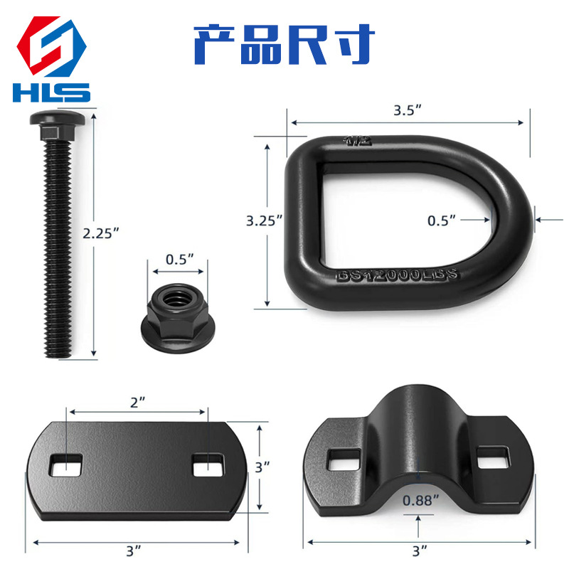 국경 간 뜨거운 판매 1/2 인치 D-링 12000 파운드 스프레이 플라스틱 해양 D-링 밴 수평 링 평판 트럭 풀 링