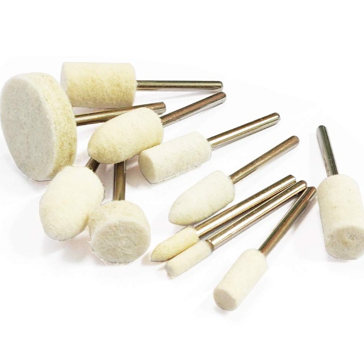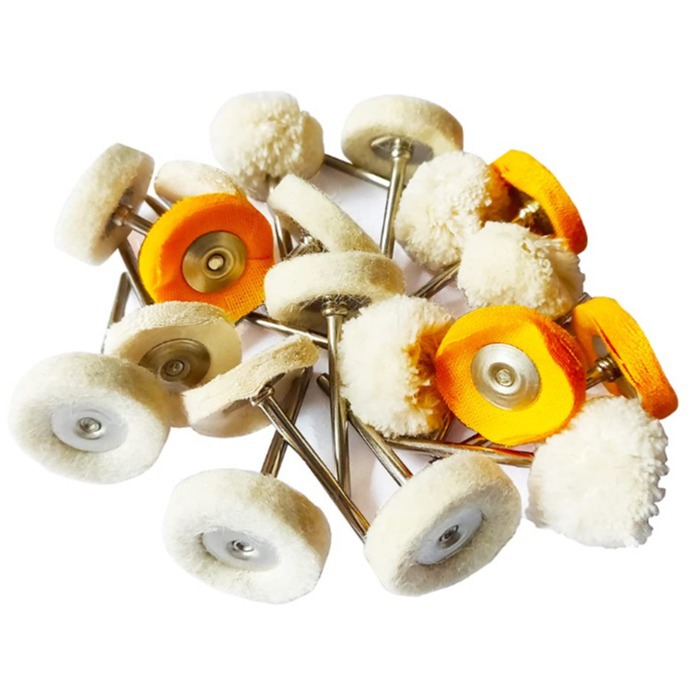 6 件 - 羊绒抛光轮; 6 件 - 羊毛毡抛光轮 6 件 - 软棉抛光轮; 6 件 - 白布堆叠抛光轮 6 件 - 黄布堆叠抛光头; 10 件 - 羊毛毡抛光钻头 10 包 - 抛光垫(直径 1 英寸); 25 包 - 抛光垫轮(直径 1/2 英寸) 2 包 - 心轴 1/8 英寸柄尺寸毡抛光头支架; 1 块柔软清洁布