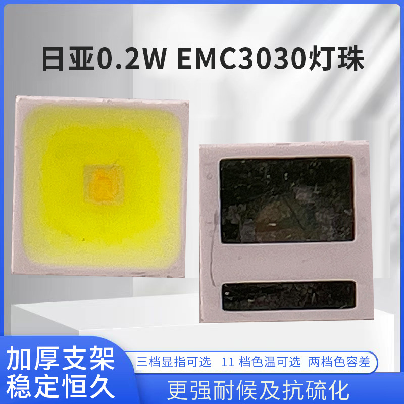 브랜드 NICHIA 모델 NFSW757HT-V1 차원 3.3*3.0*0.8MM 힘 0.2 컬러 렌더링 인덱스 80 광속 36-46 앞으로 전압 3 역전압 5 정전기 고장 전압 (ESD) 8000 정격 현재 65 칩 브랜드 NICHIA 칩 크기 3030 인광 브랜드 리야 접착제 브랜드 리야 와이어 소재 골드 와이어 브래킷 소재 EMC 빛나는 각도 120 발광 효율 210 색상 공차 3 열 저항 13 최대 허용 접합 온도 125 전압 온도 계수 0.1 1000 시간 정사이즈 노화 100 6000 시간 정사이즈 노화 98% LM-80 테스트 통과 여부 예 색 온도 간격 2000-6500 상관 색 온도 2000 주요 하류 플랫폼 독립 역 주요 판매 지역 북미 라이센스 개인 상표 예 국경 간 수출의 원천이 독점적인지 여부 예 -