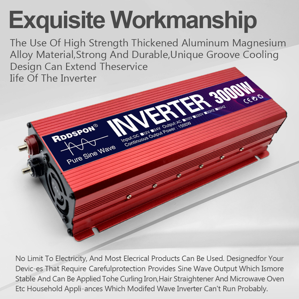 브랜드 RDDSPON 제품 인증 CE FCC ROSH LVD 인버터 효율 95% 전반적인 차원 20*20*10 사양 3000W-24V-60HZ 전원 공급 장치 유형 인버터 전원 공급 장치 -