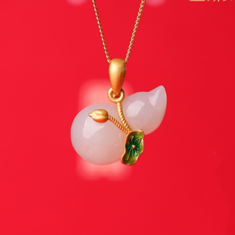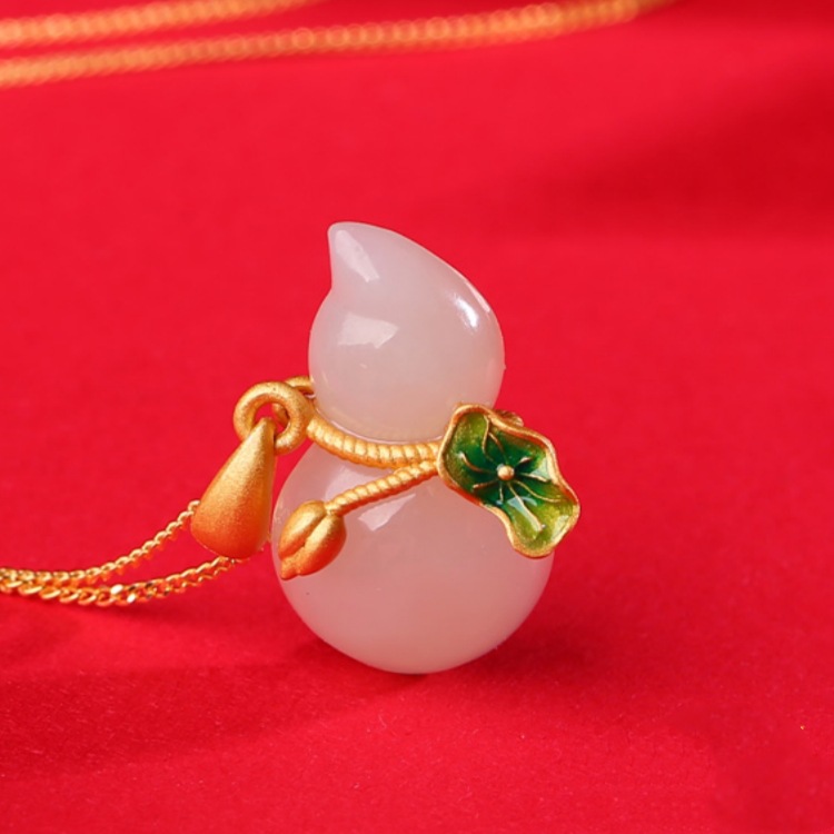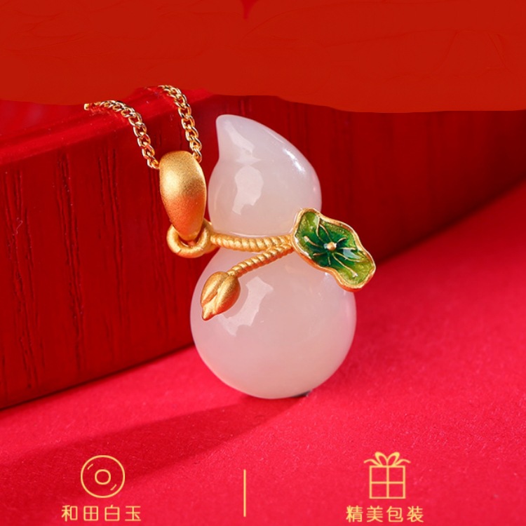 옥 조롱박 목걸이 여자 실버 새 중국 스타일 국가 스타일 Hetian 옥 펜던트 어머니의 생일 선물 여자 친구